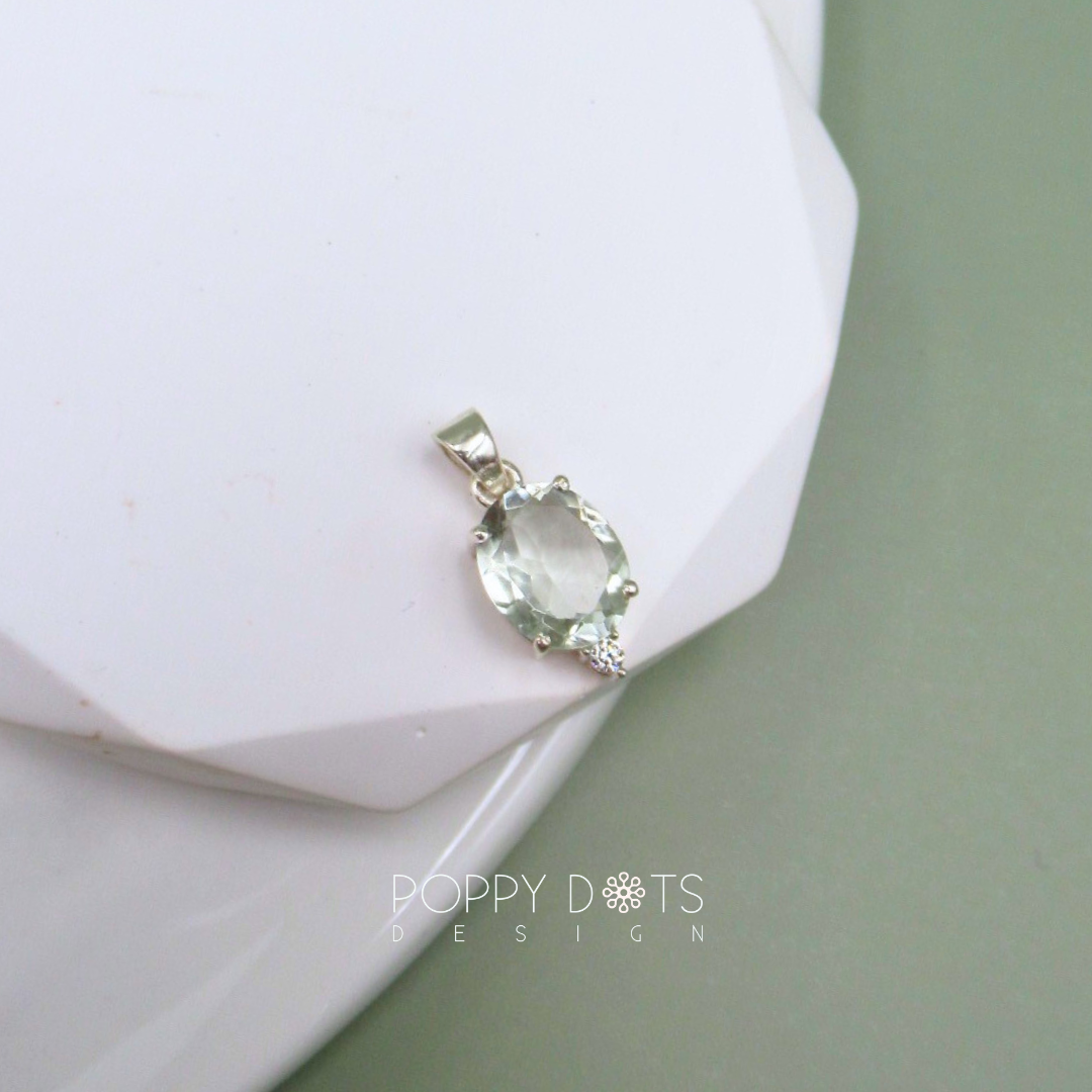 Sterling Silver Oval Green Amethyst and Zirconia Pendant