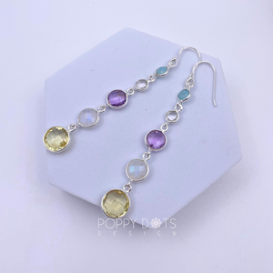 Sterling Silver Blue Onyx, Crystal, Purple Amethyst, Moonstone and Citrine Quartz Earrings