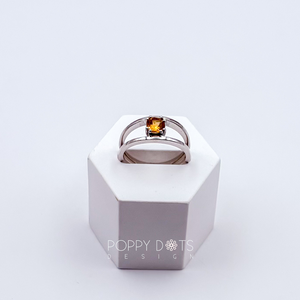Make a statement with the Sterling Silver Double Band Citrine Quartz Ring, showcasing two sleek bands adorned with a vibrant yellow 5mm round Citrine Quartz gemstone. Crafted in 925 sterling silver, this modern design is perfect for November birthdays, anniversaries, or everyday sophistication.