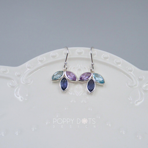 Sterling Silver Leafy Blue Topaz, Iolite and Purple Amethyst Earrings