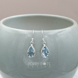 Sterling Silver Bigger Teardrop Blue Topaz Earrings