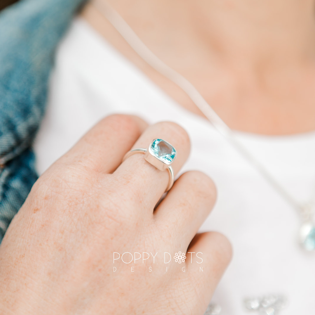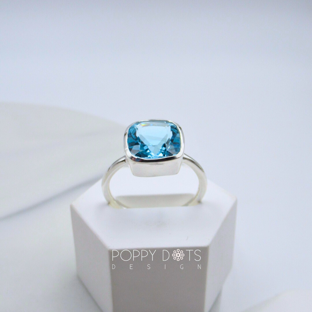 Luxurious Sterling Silver Square Blue Topaz Ring