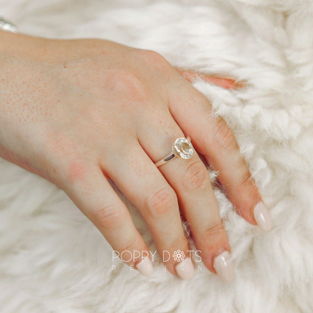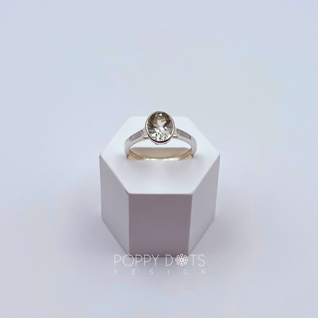 Sterling Silver Elevated Oval Green Amethyst Ring