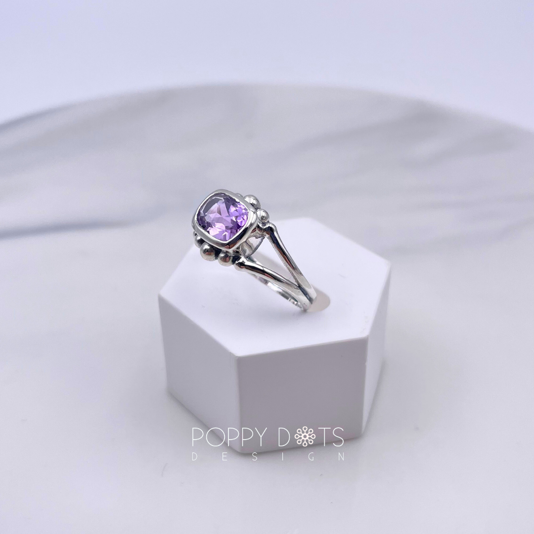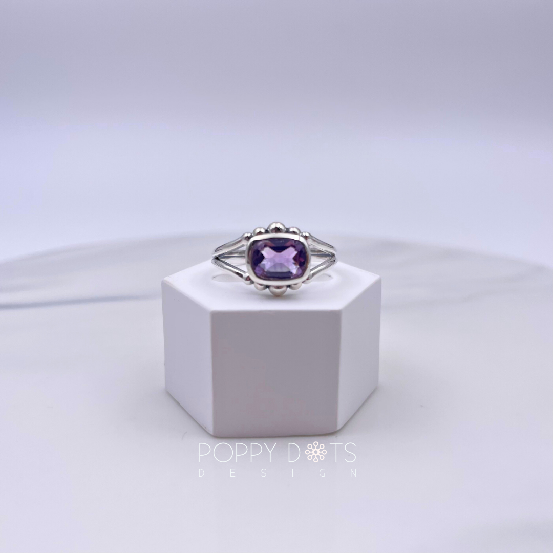 Detailed Sterling Silver Purple Amethyst Rectangular Ring