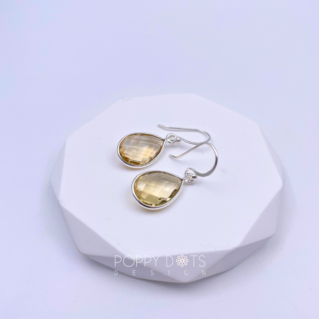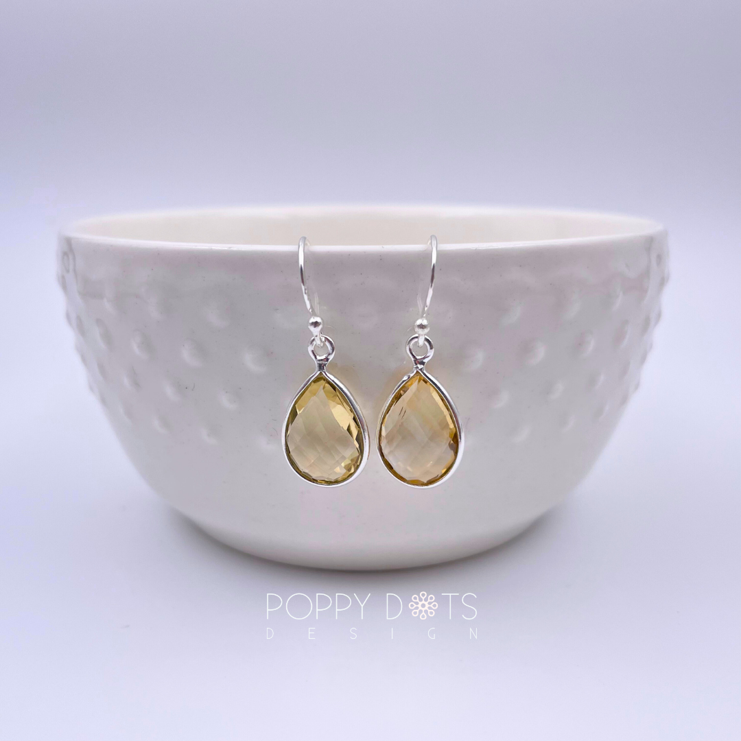 Sterling Silver Citrine Quartz Teardrop Earrings