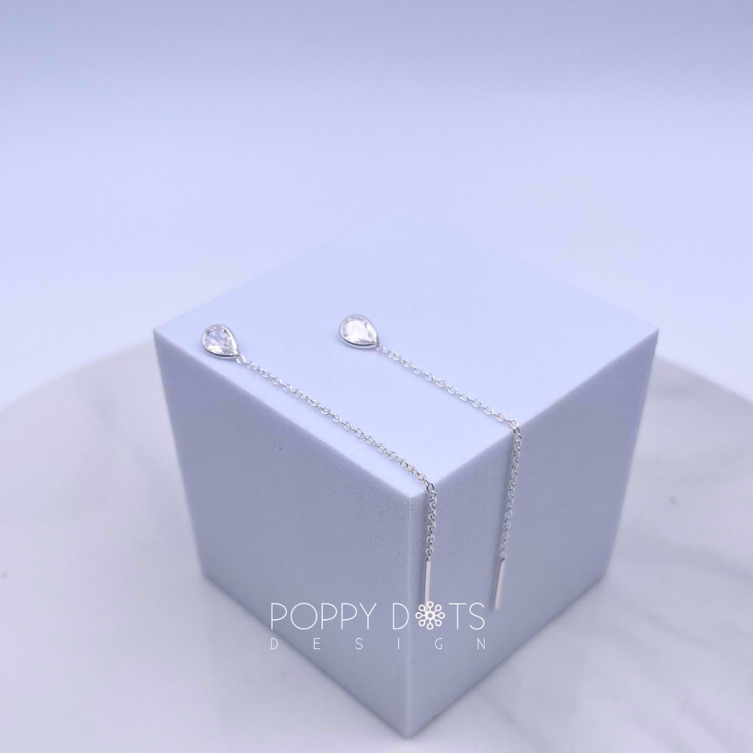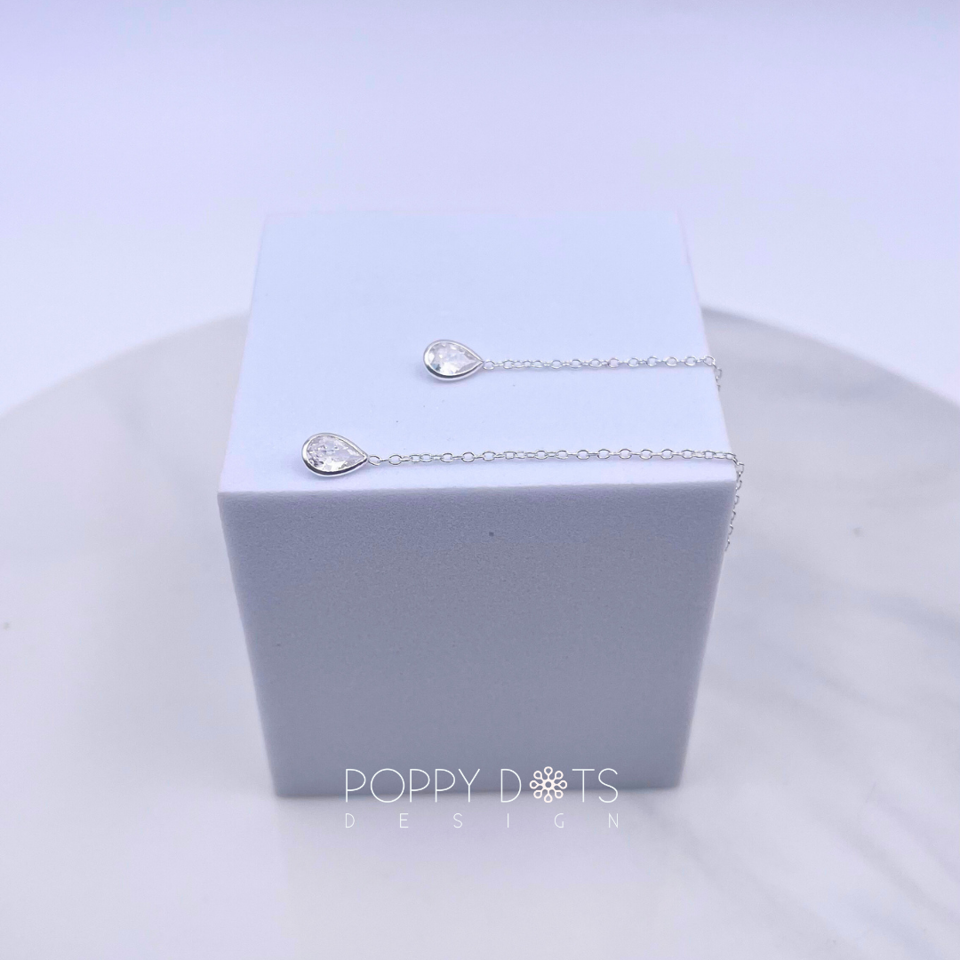 Sterling Silver White Teardrop Zirconia Threaders
