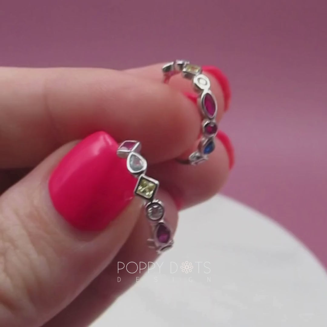 Sterling Silver Multi-Shaped and Coloured Zirconia Hoop Earrings