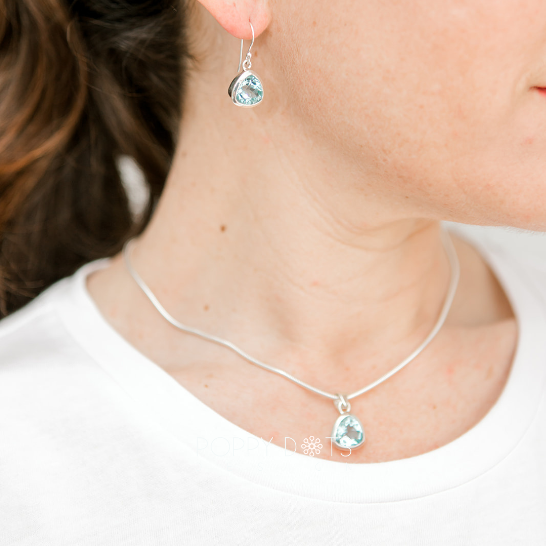 Sterling Silver Blue Topaz Trillion Earring and Pendant Set