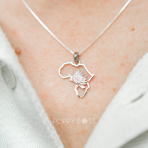 This Sterling Silver Africa Protea Pendant showcases the intricate beauty of the African national flower - a symbol of beauty, strength, and resilience. Crafted from high-quality sterling silver, this pendant is a stunning representation of African culture and nature. Add this unique and elegant piece to your jewelry collection today.