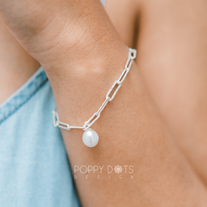 Sterling Silver Hammered Paper Clip Bracelet with Freshwater Pearl Drop
