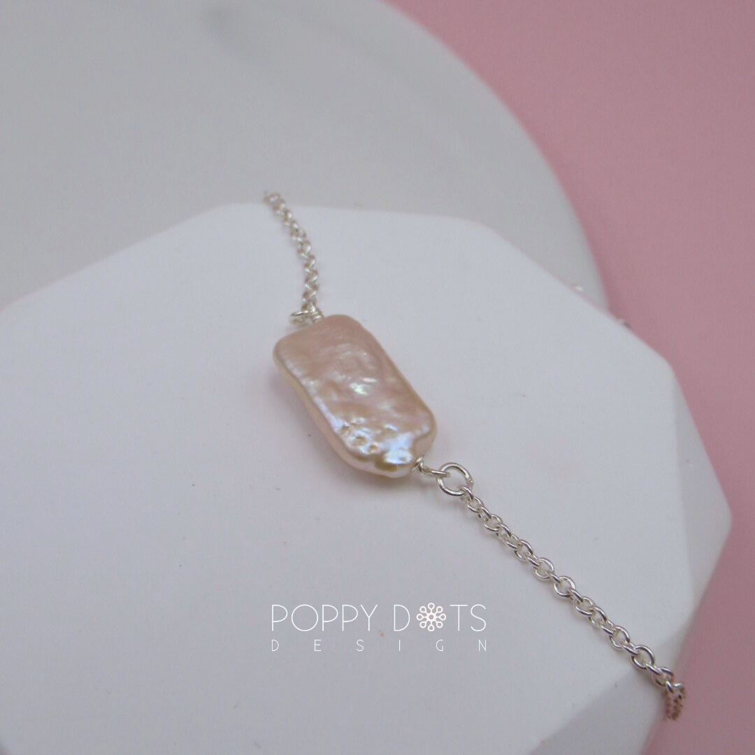 Sterling Silver Rectangular Freshwater Pearl Bracelet