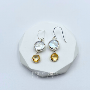 Luxurious Sterling Silver Coin Pearl Citrine Quartz Earrings