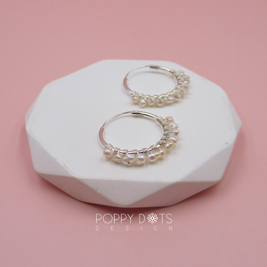 Classic hoops with a romantic twist. Delicate freshwater pearls are hand-wrapped around polished sterling silver, creating a soft, textured glow that whispers sophistication.