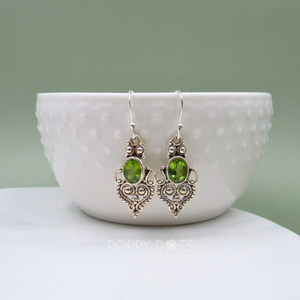 Detailed silver filigree meets the lively glow of peridot - the stone of happiness. Each pair feels like a smile you can wear.