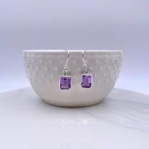 Sterling Silver Rectangular Purple Amethyst Earrings
