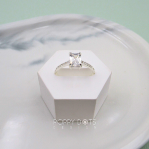 Sterling Silver Solitaire Rectangular Zirconia Ring