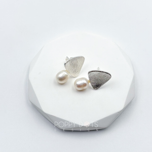 Add a touch of understated elegance to your look with these Brushed Sterling Silver Triangle Pearl Studs. The delicate brushed triangle design paired with lustrous pearls creates a sophisticated and versatile accessory perfect for everyday wear or special occasions.