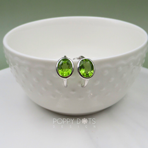 Sterling Silver Oval Peridot Hoop Studs