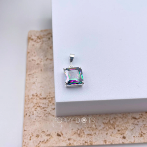 Sterling Silver & Square Mystic Topaz Pendant