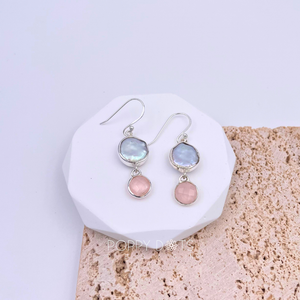 Luxurious Sterling Silver Coin Pearl Rose Quartz Earrings