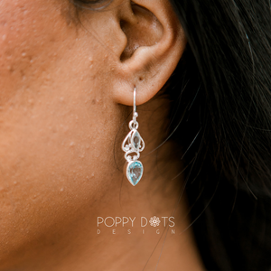 Sterling Silver Elegant Teardrop Detailed Blue Topaz Earrings