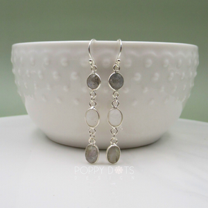 Sterling Silver Long Dangling Moonstone and Labradorite Earrings