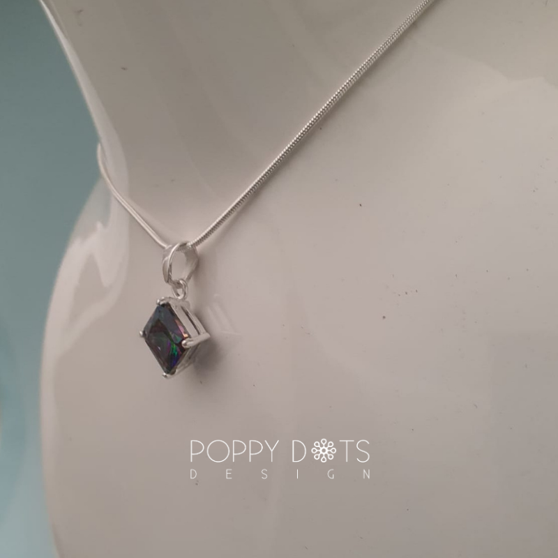 Sterling Silver & Square Mystic Topaz Pendant
